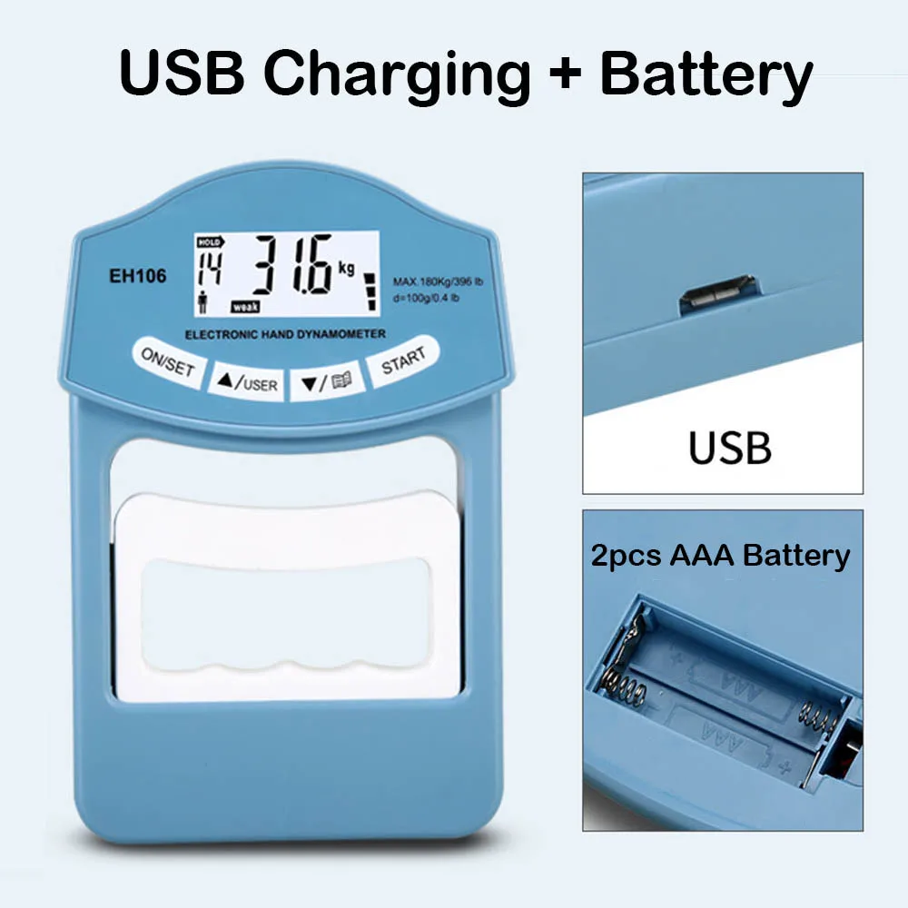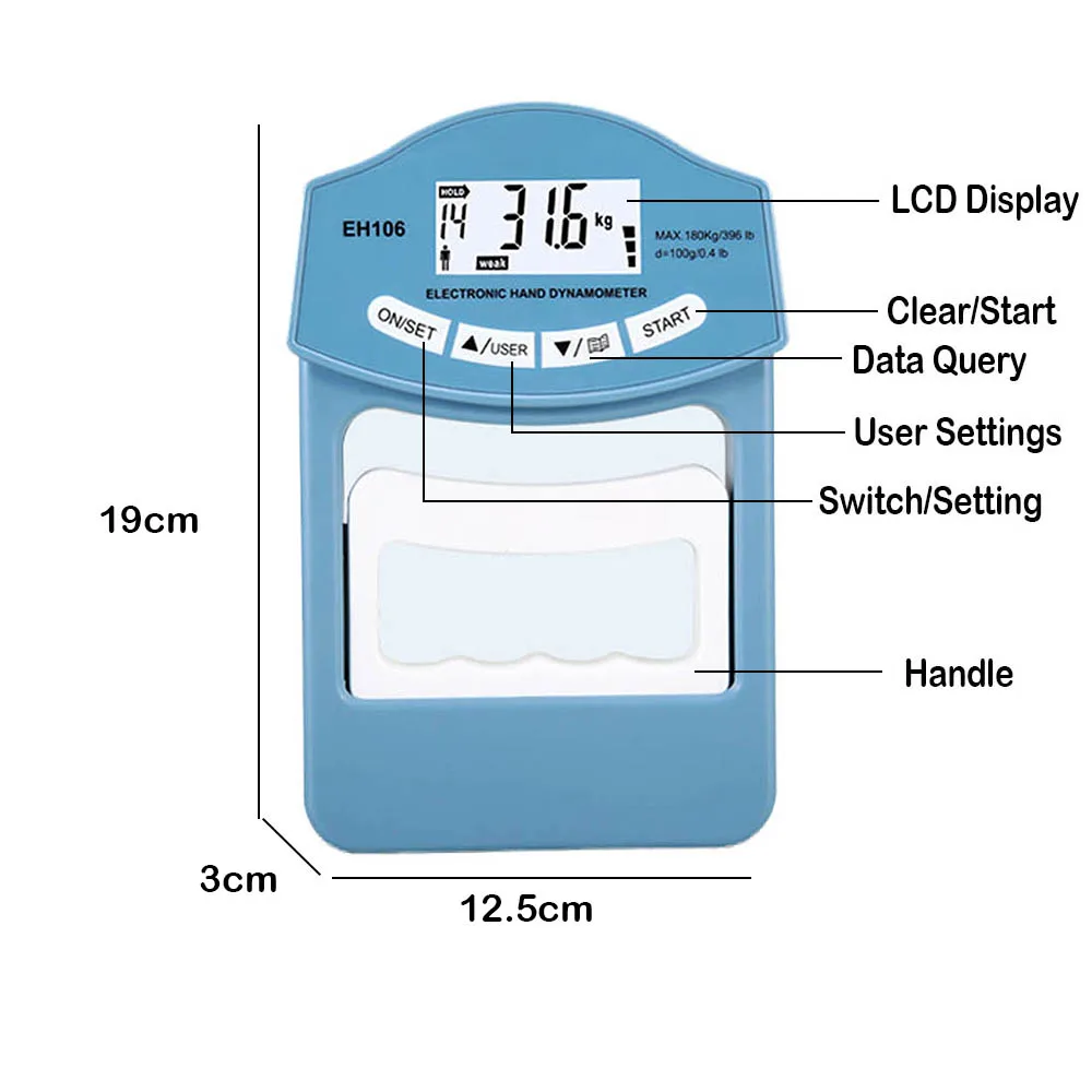 ACCURACY - Equipped with high precision strain gauge sensor, the hand dynamometer gives you accurate momentary digital reading of gripping power. Measuring Capacity: 396lbs / 180kgs; Division: 0.2lbs / 0.1kgs